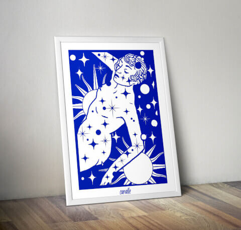 Affiche A3 - réalisée main et retravaillée en numérique. Impression sur papier d'art 190G mat Edition limitée à 50 exemplaires. Livrée signée et numérotée