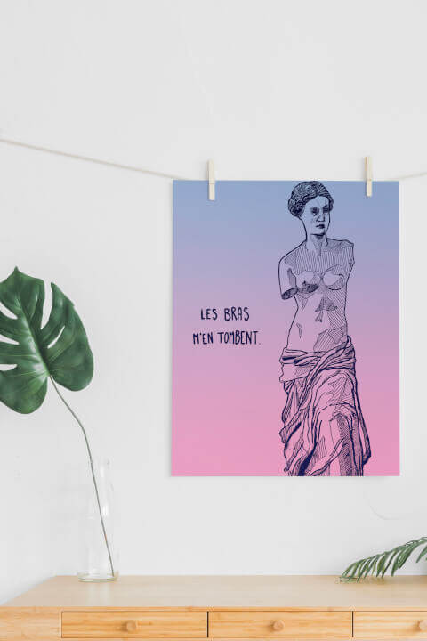 Affiche A3 - réalisée main et retravaillée en numérique Inspirée de la Vénus de Milo Impression sur papier d'art mat 190G Livrée signée et numérotée - édition limitée à 50 exemplaires